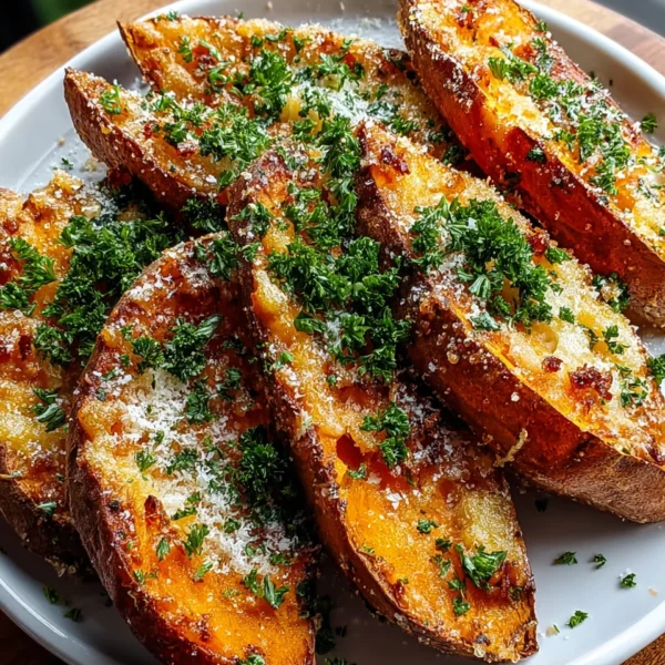 Garlic Parmesan Sweet Potato Wedges: Healthy Snack!