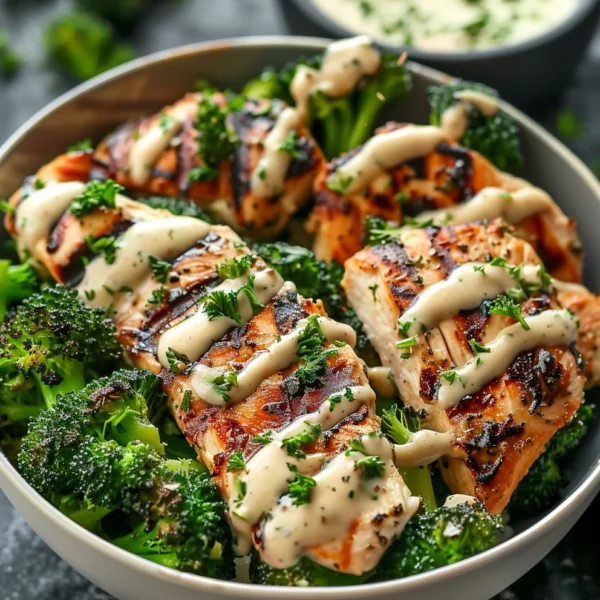 Grilled Chicken Broccoli Bowls with Creamy Garlic Sauce